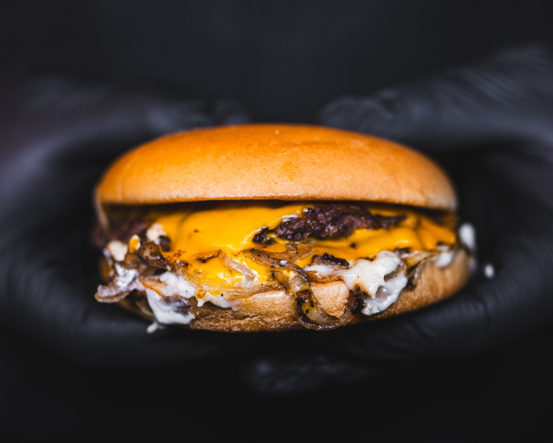 Delicioso burguer com pãozinho padrão selado com ghee, 2 burgers de carne smasheados com cebola na chapa, 2 fatias do seu queijo favorito e nossa inconfundível maionese defumada!